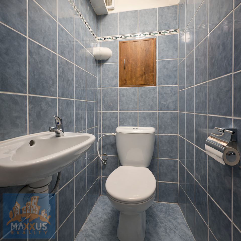 Byt disponuje koupelnou se sprchovým koutem a samostatným WC. Společné prostory domu mají zachované historické prvky, které dodávají místu osobitý charakter.