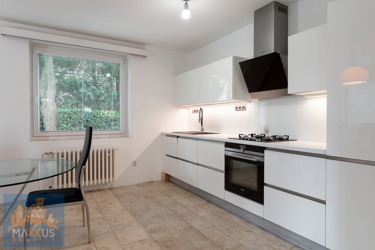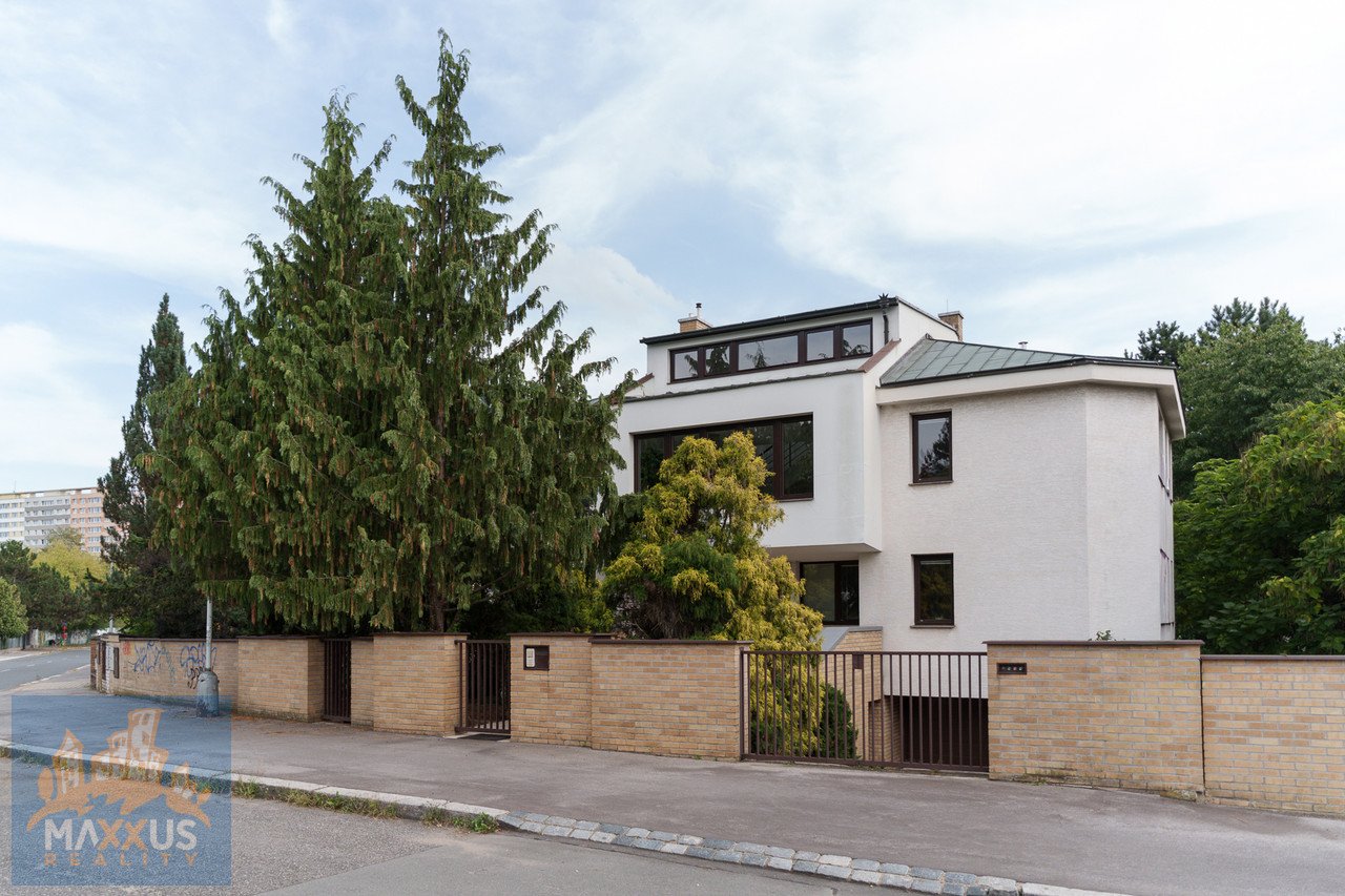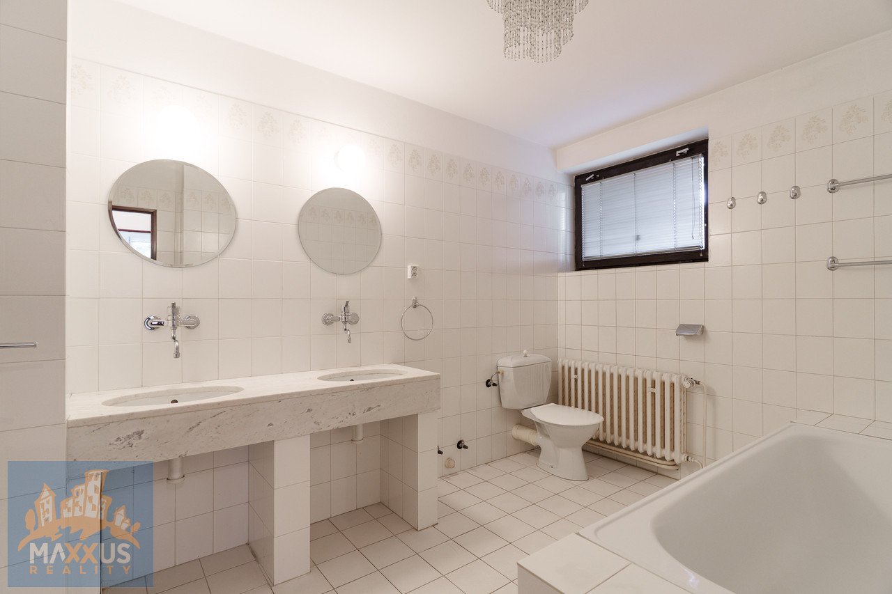 Pronájem nadčasové dvougenerační vily o dispozici 11+2 se zahradní terasou a garáží. Vila se nachází v oblíbené a vyhledávané lokalitě Prahy 4 – Lhotka. Vila se zastavěnou plochou 236 m2 leží na pozemku s rozlohou 1044 m2. Na pozemku zahradou se vzrostlou a udržovanou vegetací. V blízkosti příroda a skvělá dopravní dostupnost - tram, bus, v okolí také mezinárodní škola. Dům o velkorysé užitné ploše 436 m2 se rozkládá ve třech podlaží. V suterénu domu se nachází hala se schodištěm, ze kterého se vchází do kotelny/prádelny, garáže, sklepu a obytné části. Z obytné části je vstup do vybavené kuchyně a ložnice s vlastní šatnou a koupelnou. K obývací místnosti náleží zahradní terasa 13 m2 ze které je dále vstup do zahrady. V přízemí domu se nachází vstupní schodišťová hala (komunikační uzel) s předsíní a prostorným obývacím pokojem vybaveným krbem na dřevo. Z obývacího pokoje dále vstup do ložnice se šatnou, koupelnou, samostatnou toaletou a pracovnou. Dále je zde spotřebiči vybavená kuchyně o rozloze 28,9 m2. V přízemí domu je samostatný vchod ze vstupní haly do hostinského pokoj s vlastní šatnou i koupelnou. Patro domu je dispozičně řešeno stejně jako přízemí. V podkroví se nachází ateliér vhodný pro pracovnu a úložné prostory. Parkování je možné v garáži či na pozemku. Energie se převádí na nájemce (měsíční odhad za celý dům okolo 12.000,- Kč/měsíc). Dům je volný k nastěhování ihned. Plánky domu jsou na konci galerie. PENB nebyl dodán, a tudíž třída energetické náročnosti je dle vyhlášky 148/2000 Sb. uvedena jako G. Makléř doporučuje prohlídku.